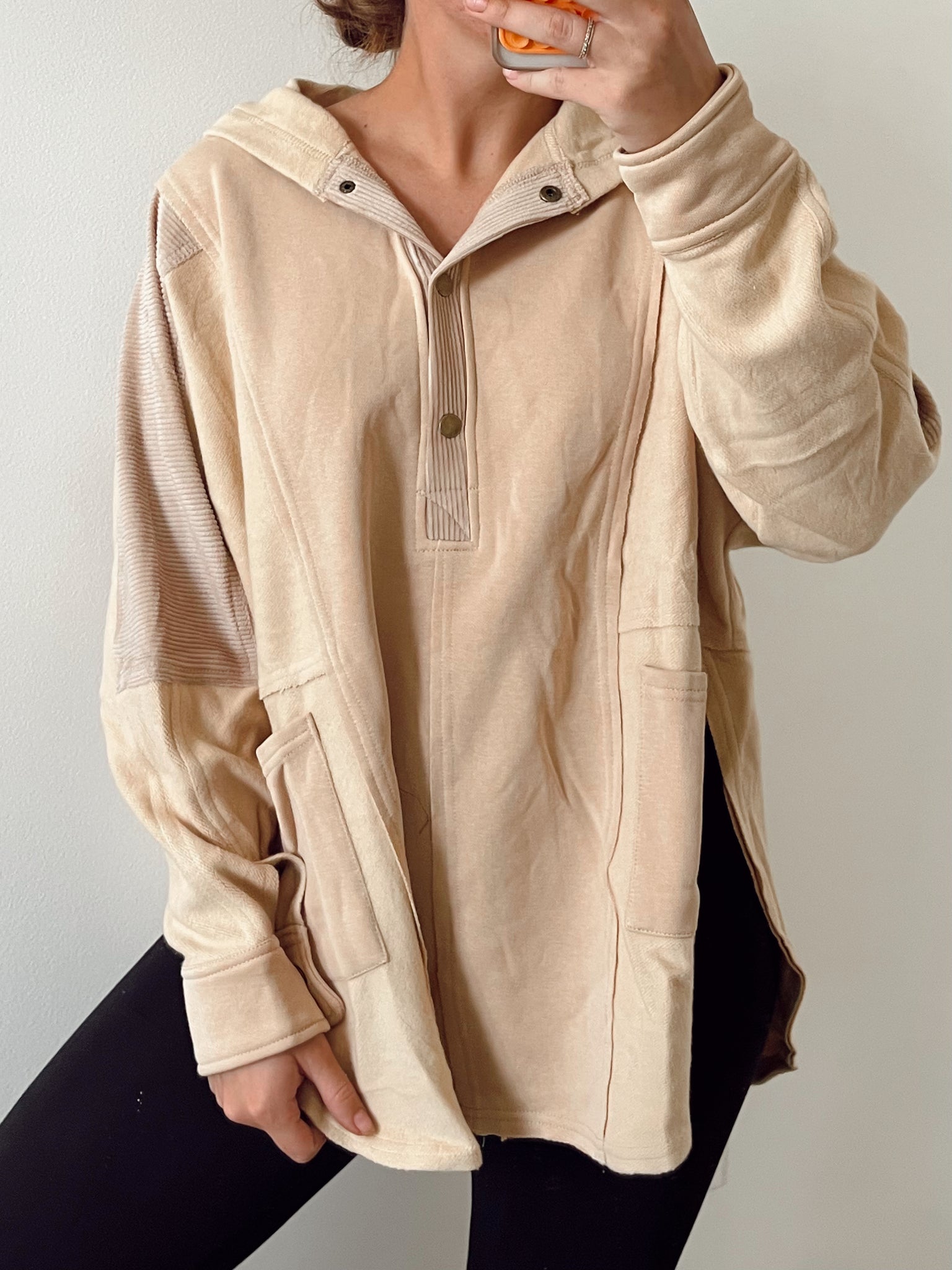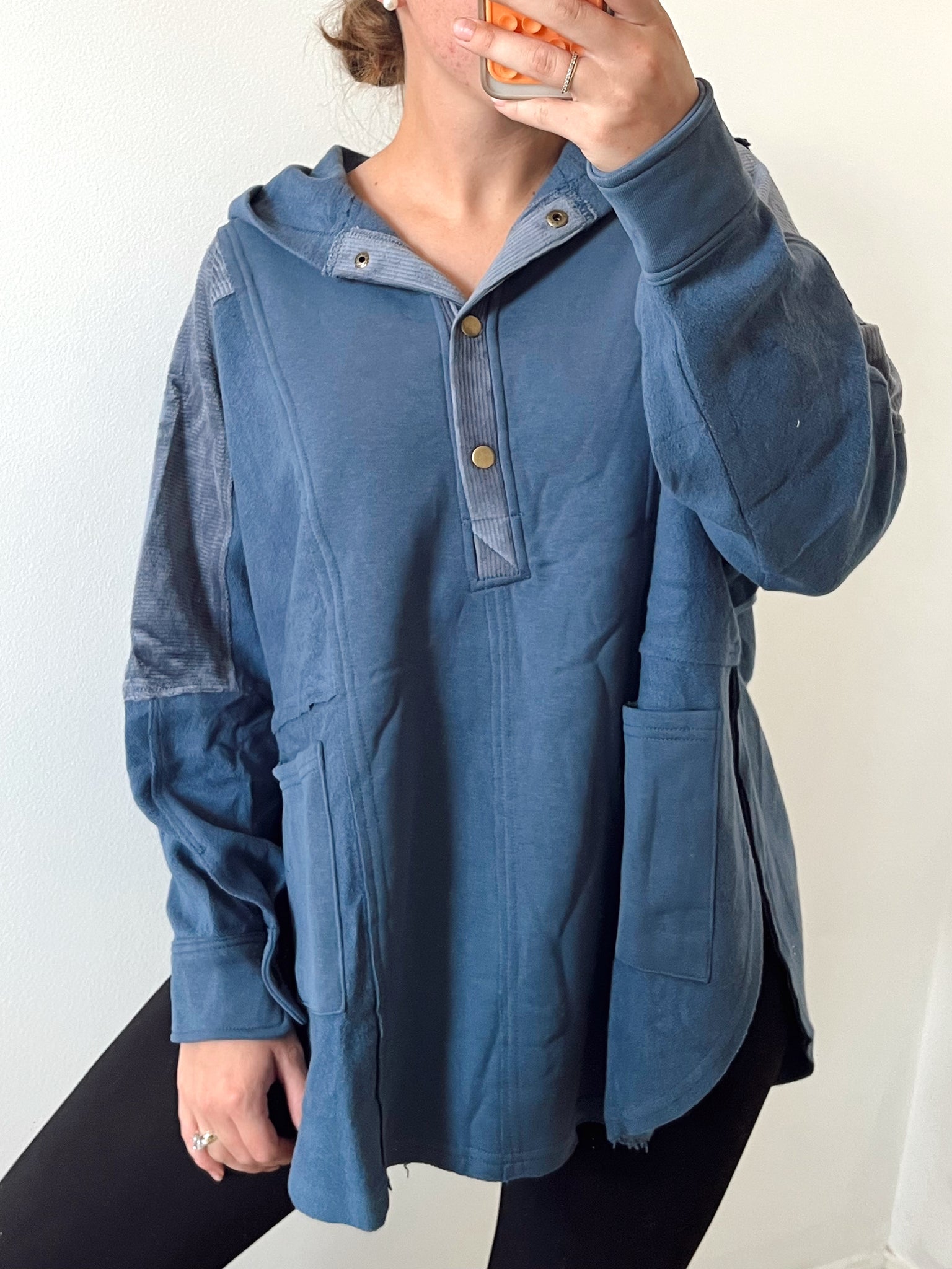 Embrace cozy style with the Dove Pullover! This oversized henley features playful contrasting corduroy panels and raw seaming for a fresh, textured look. It’s your go-to top to effortlessly pair with leggings or jeans, offering comfort and flair all day long.